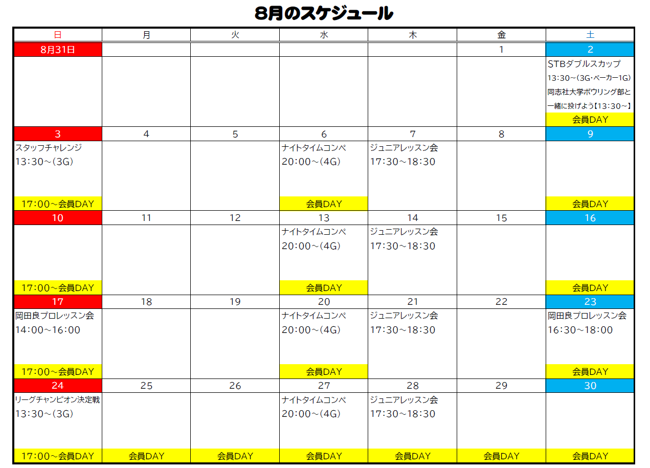 12月の予定表と混雑状況について